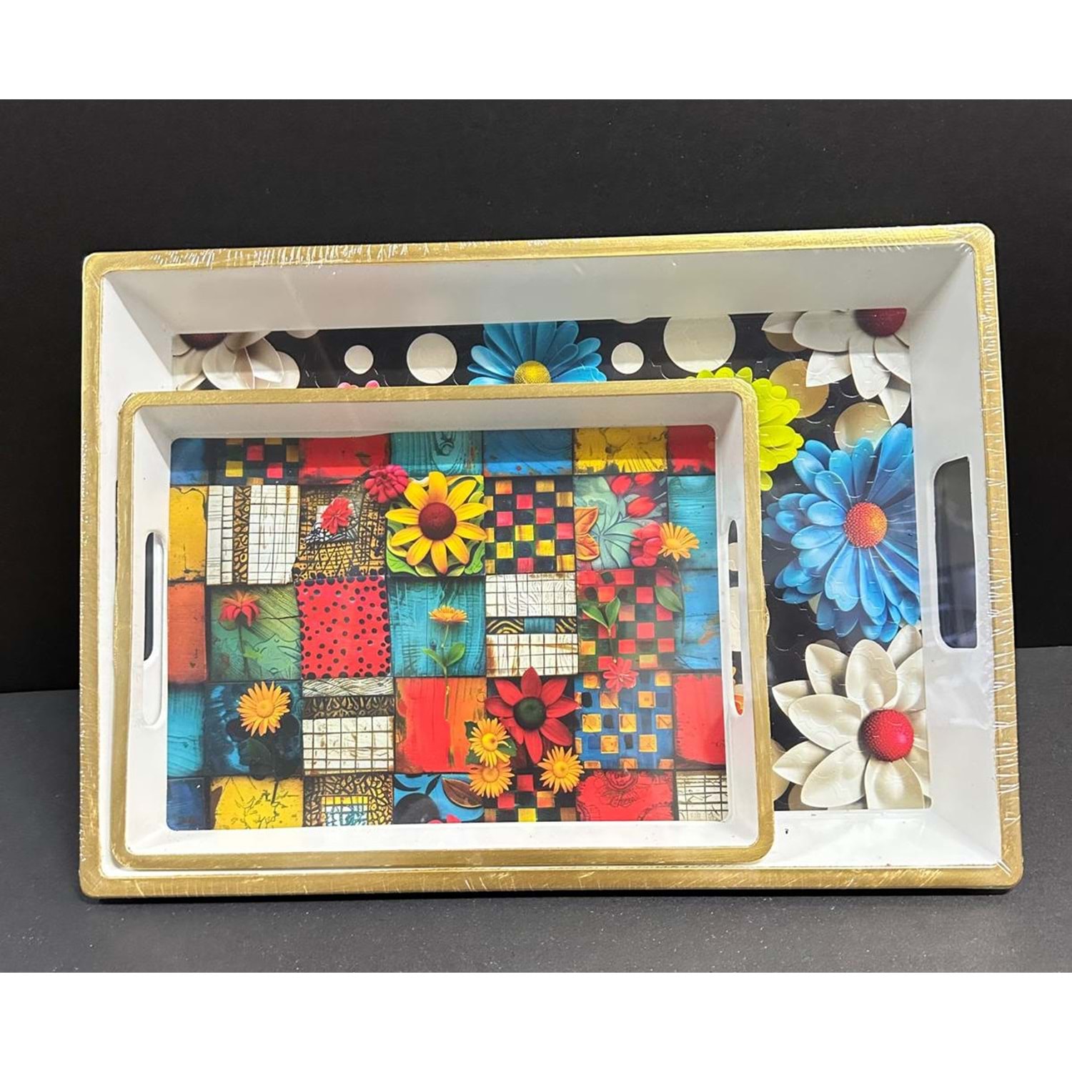 2 Lİ LÜX BEYAZ KARE TEPSİ BÜYÜK BOY *18